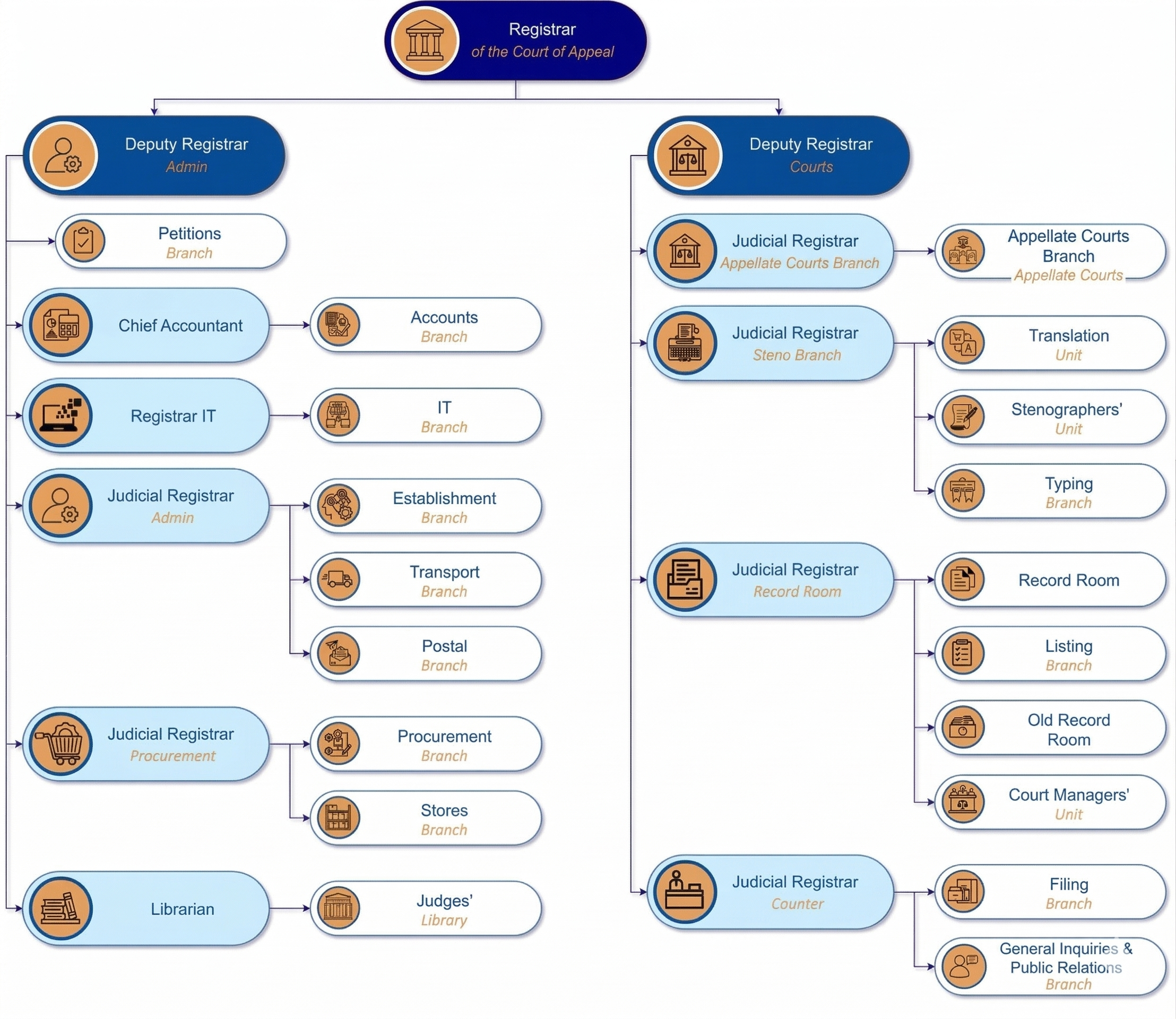 The Court of Appeal Registry is the key administrative unit responsible for supporting the operations of the country’s superior appellate court. Headed by the Registrar, the office handles the filing, processing, and management of all cases brought before the Court of Appeal. It ensures proper maintenance of court records, facilitates communication between the court and legal practitioners, and oversees the scheduling and documentation of hearings. The Registrar’s office plays a crucial role in upholding procedural integrity and efficiency, serving as the primary point of contact for litigants and attorneys involved in Court of Appeal proceedings.