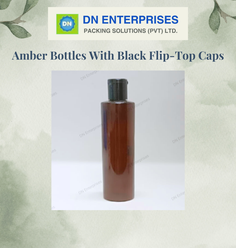 200ml Amber Bottles With Black Flip-Top Caps